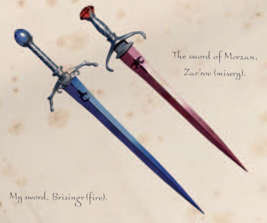 - По-мнению Руноны, "Брисингр" - это, возможно, часть истинного имени меча, которое Эрагон случайно угадал.