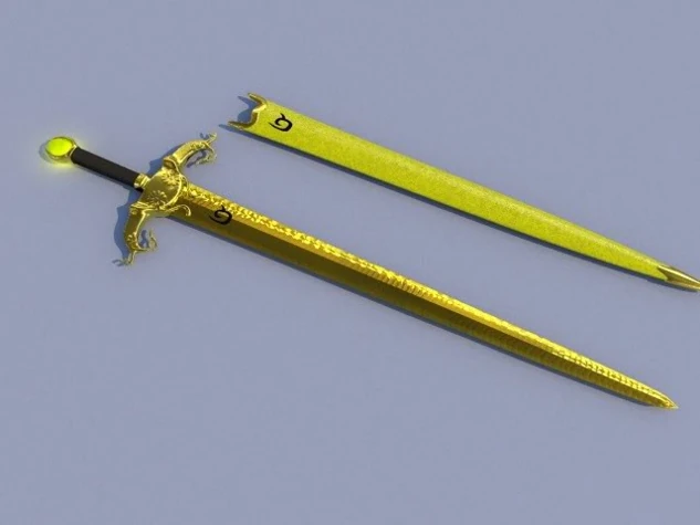 Меч имеет ярко золотой цвет, как у дракона Оромиса Глаэдра.