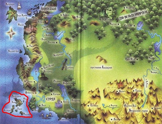 | Моря и озёра: | Айзенстар • Ардуин • Западное море • Леона • Северное озеро • Тюдостен • Элдор |