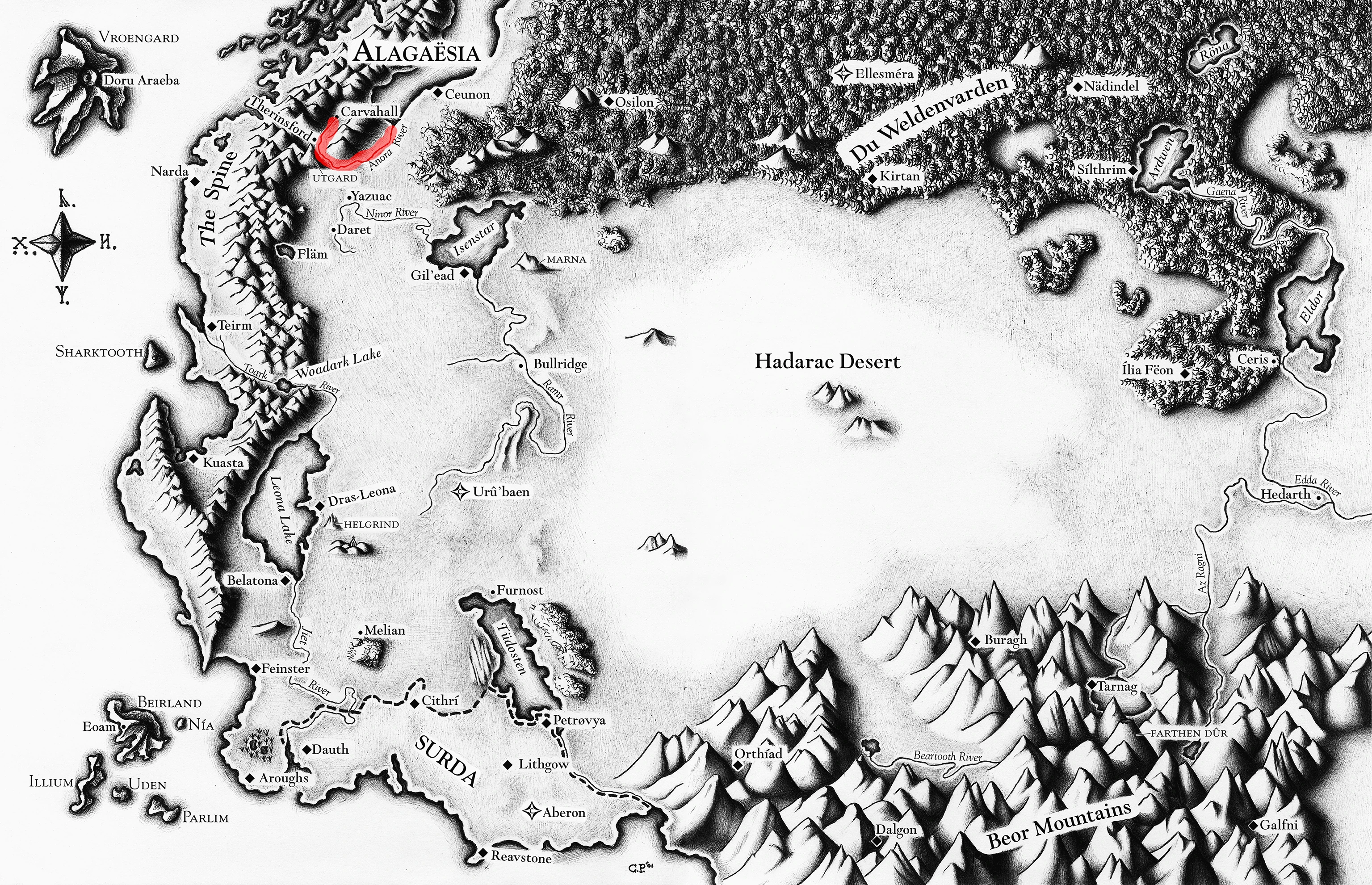 The Anora River, the farthest north-western river in Alagaësia, was a river that started at the Igualda Falls and lead south from Carvahall, past Therinsford, until it reached the mountain Utgard, after which it bent northwards, eventually flowing into the sea.