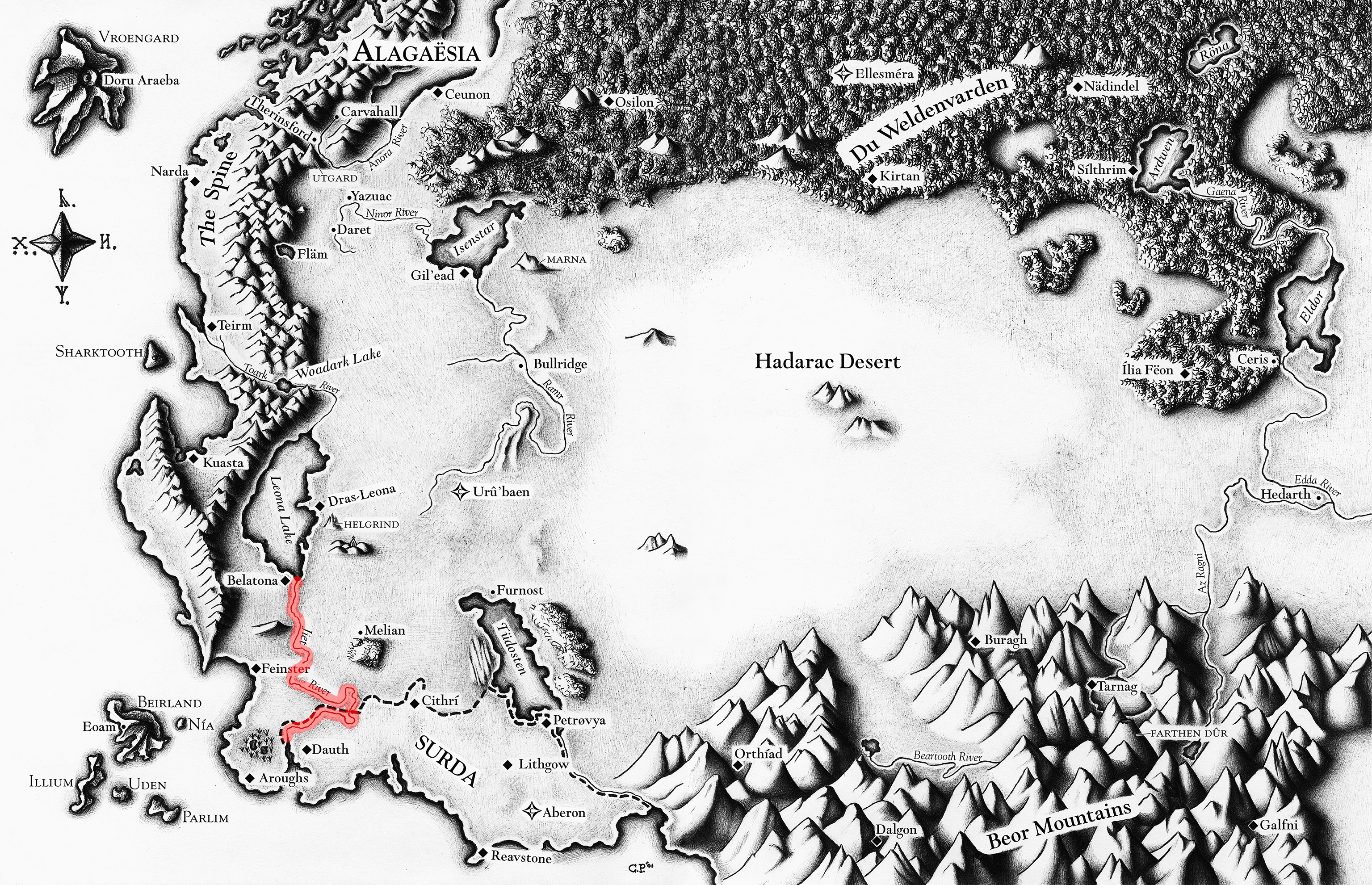 The Jiet River was a river located on the western border of Surda in southern Alagaësia. The Broddring Empire used it as an invasion route into Surda just prior to The Battle of The Burning Plains, which took place right next to it. It was also the place where Roran and the rest of Carvahall met with Eragon during the battle at the end of Eldest. It was said to look like "the milk of some beast" and reflect many colors. According to Saphira, the air was cooler over the Jiet River than over the land surrounding it. It flows out of Leona Lake by Belatona down through the southern Broddring Empire until it reached Surda. Dauth was located on it.