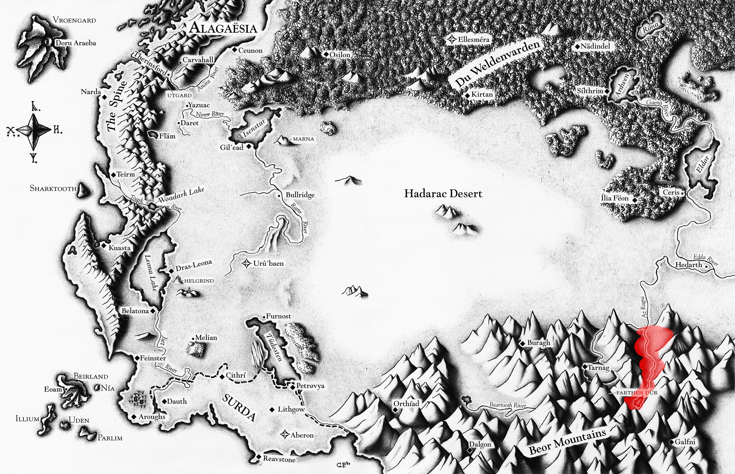 The Odred Valley in the Beor Mountains was widely regarded as the safest route in and out of the range. The Ragni Darmn flowed through it, eventually meeting the Âz Ragni. It is a very long valley with only one opening.
