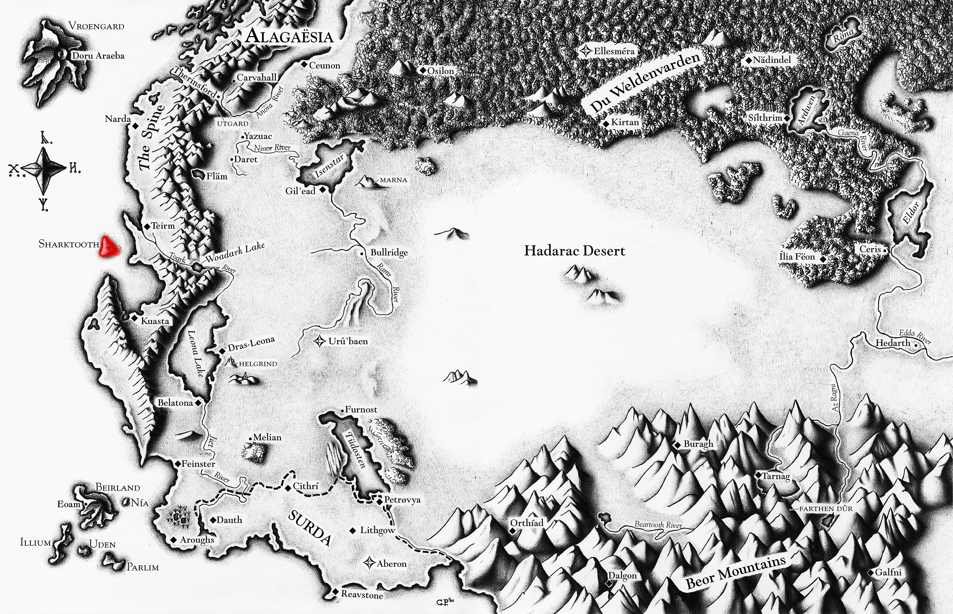Sharktooth Island was an island off the coast of Alagaësia, near the city of Teirm. Its name came from its unique tooth-like shape, as seen by the earliest riders. The island does not seem to have any significance in the Inheritance Cycle.