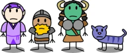 Volheim is a dwarven warrior from the North. He is usually the voice of reason in Sverd Shelgr as he is perceptive, level-headed, and agreeable. He tends to be quiet, and when he does speak, it's usually to urge the group to move along. He also has a Sean Connery accent. Volheim was sent by the Dwarf King to retrieve Urunien, a magical staff stolen from the dwarves by an enemy unknown to them (Aruna).